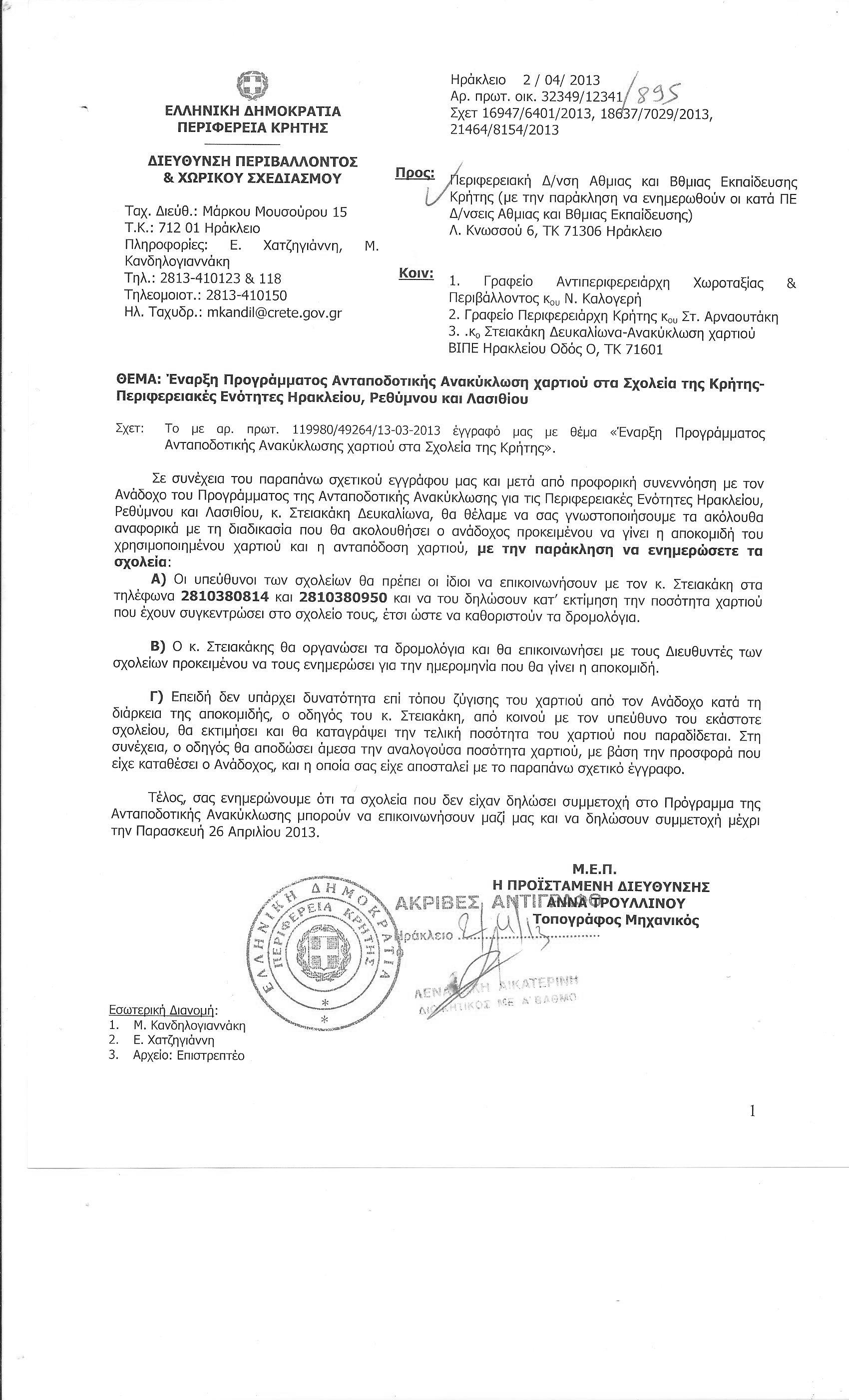 Έναρξη προγράμματος ανταποδοτικής ανακύκλωσης χαρτιού